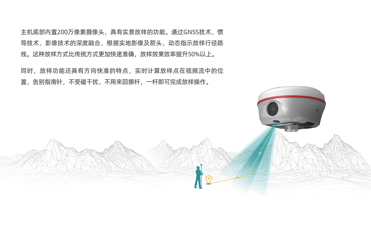 惯导倾斜测量 | 内置IMU惯性测量传感器,支持惯导倾斜测量功能,根据对中杆倾斜方向和角度自动校正坐标 |