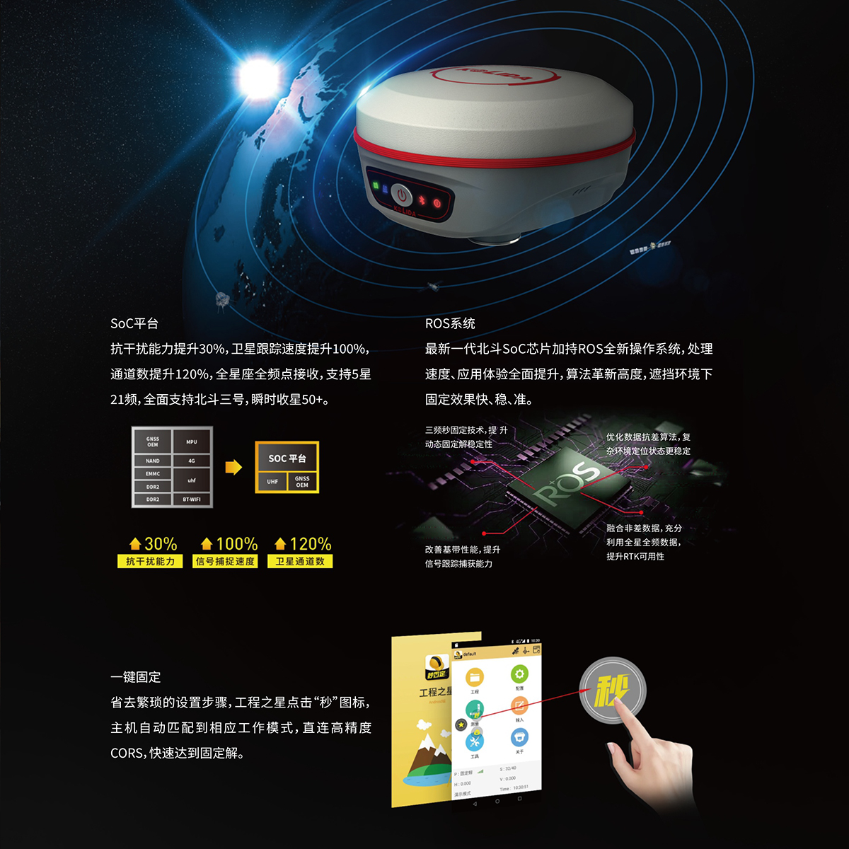 卫星多、信号强;开机、秒级固定