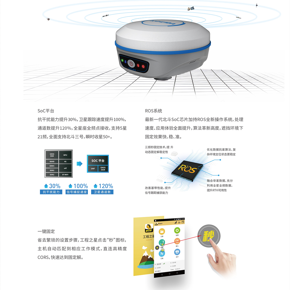 数据存储 | 内置4GB固态存储,丰富的采样间隔,最高支持20Hz的原始观测数据采集 |