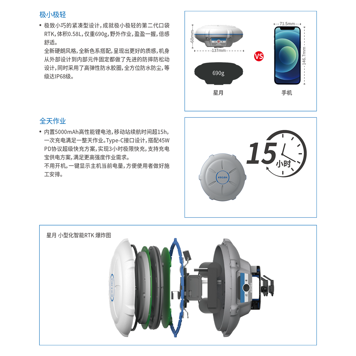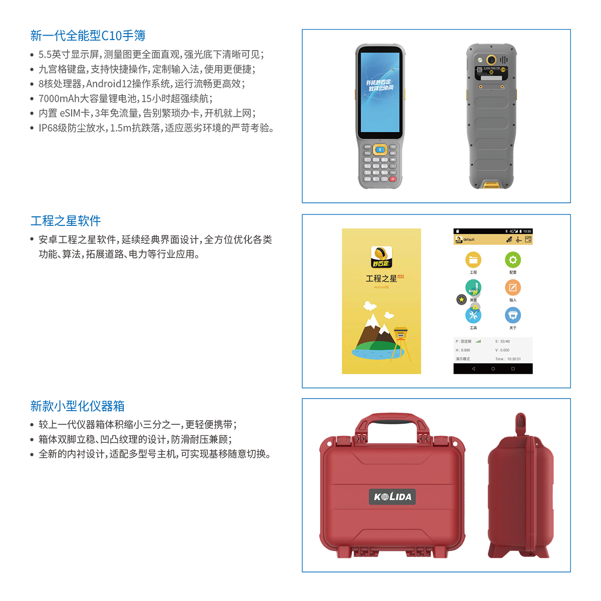 数据格式 | 静态数据格式:南方STH、Rinex2.01和Rinex3.02等多种格式 网络模式支持:VRS、FKP、MAC,支持NTRIP协议 |