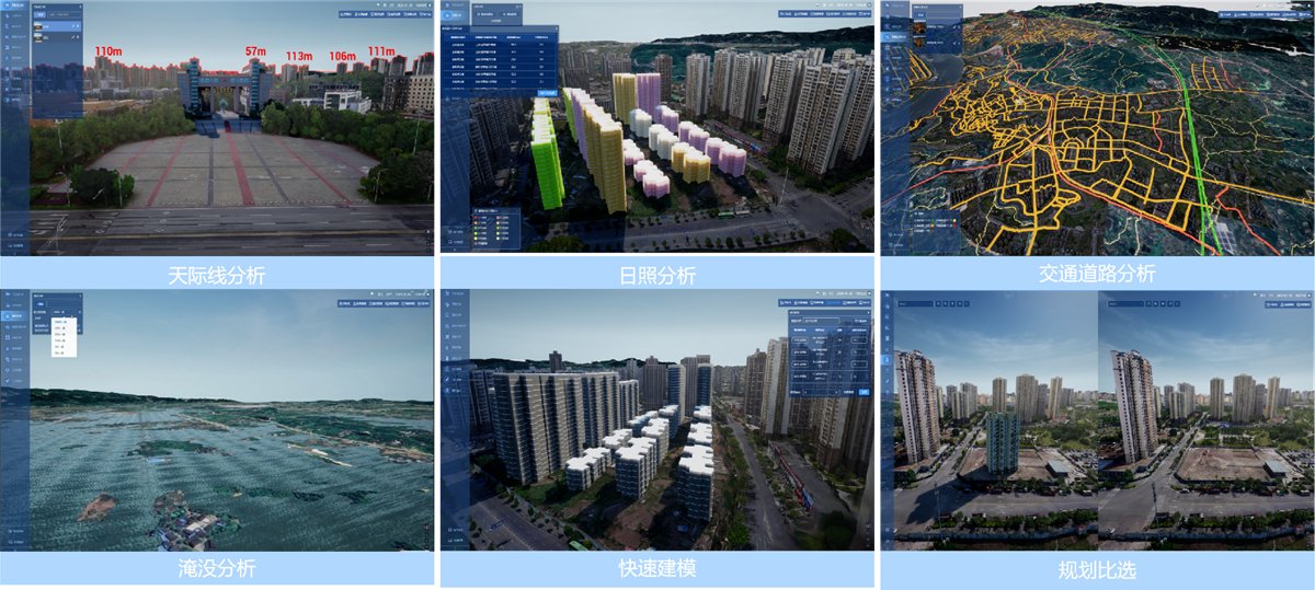 基于GIS+BIM+IoT融合技术,融合时空分析服务、模拟仿真等能力,实现二维与三维GIS技术的无缝融合、高效渲染可视化与丰富的分析功能,提供三维场景中的二维动态分析、三维模拟分析功能,推动三维GIS升华为面向业务管理和辅助决策的深度应用。