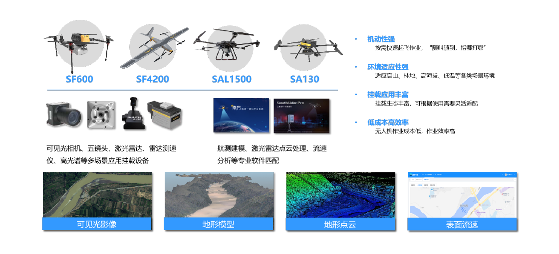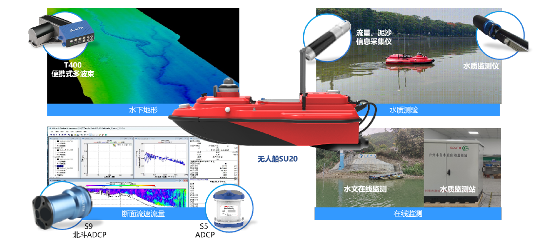 通过无人船灵活搭载多波束、水质仪、流速流量仪等各类传感设备,以及安装固定式在线监测站,感知河流水库等场景的水位、流速、流量、水质、地形等水下关键要素。