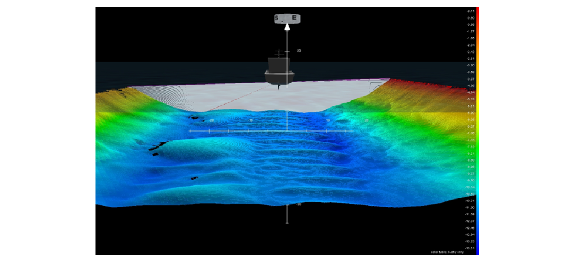 2、航道水下地形扫测:通过无人船搭载侧扫声呐、单波束/多波束测深仪对在航航道,获取航道水下地形的详细数据,为航道的设计、建设、维护和管理提供科学依据。
