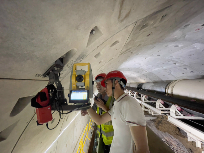 在隧道开挖导向整个方面我们也推出了国产化解决方案,通过测量机器人辅助,在盾构机掘进的时候,不间断地进行方向校验,保障整体工程的精准性。