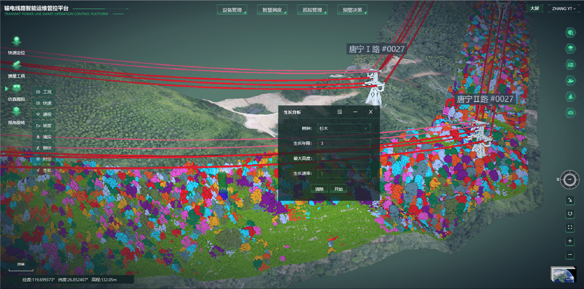 具备灵活仿真模拟功能,提供工况、通视、坡度、淹没、倒伏、时空、生长等模拟,可根据不同业务特点定制分析的应用,提升多工况仿真模拟精确性和可靠性,实现线路安全运行状态检测与输电线路运行状态超前预警。