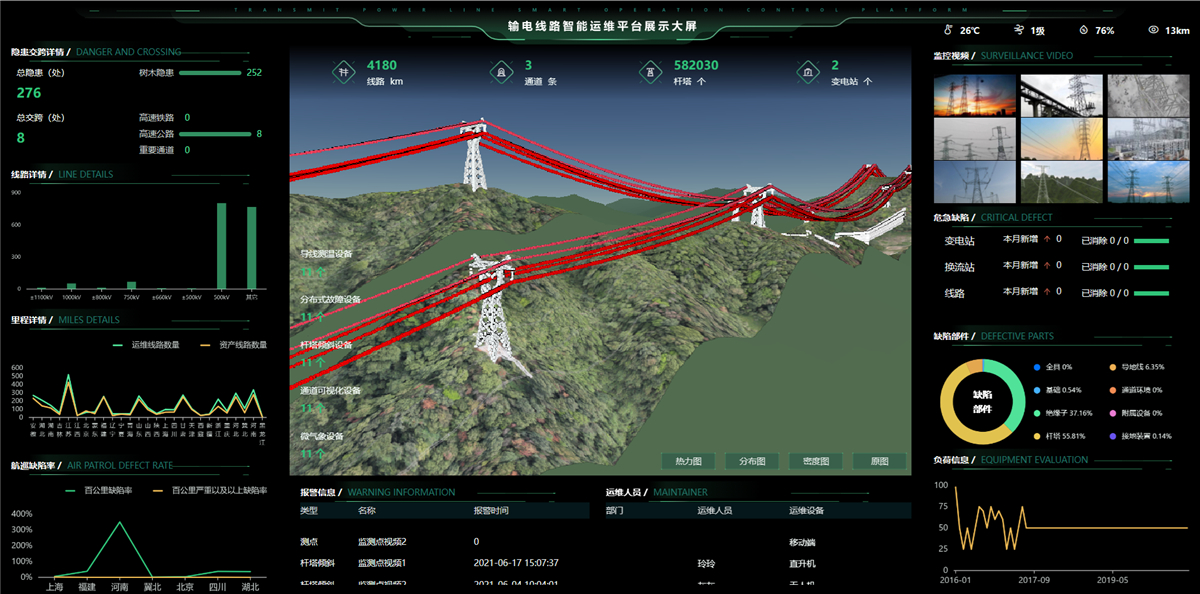 全息式展现多源时空数据信息,打造多维度、全方位智能管控平台,实现设备、通道环境、运行状态的三维数字可视化,服务于输电线路精细化管理。